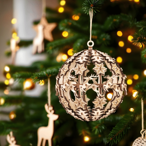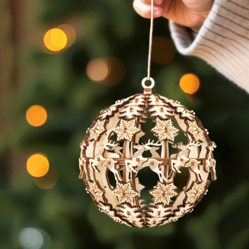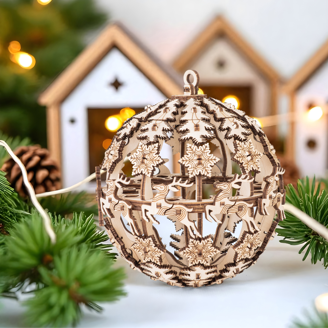 Этот небольшой деревянный конструктор станет отличным новогодним сувениром. Его можно собрать всей семьей, а потом повесить на ёлку как украшение, или подарить коллеге, ребенку или другу.