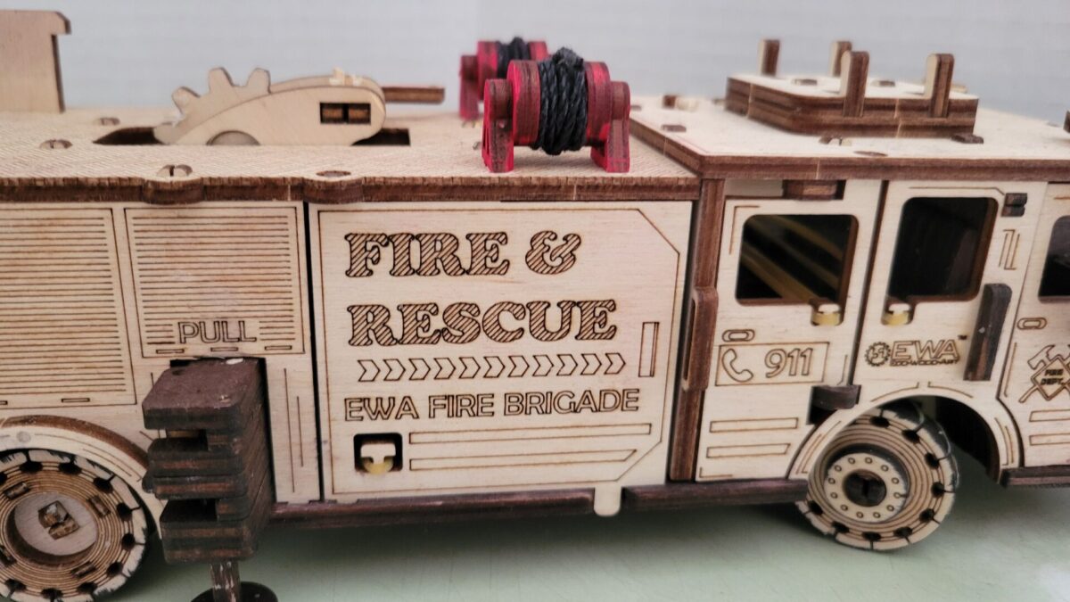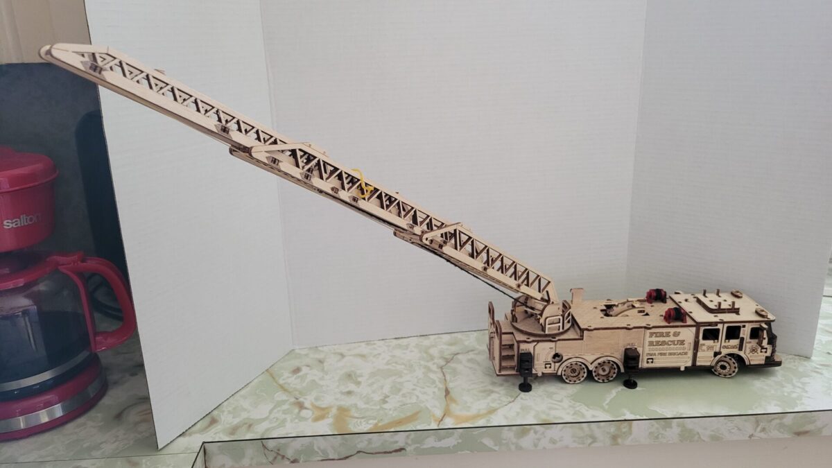 This is a beautiful Fire Truck well thought out with no parts missing and good instructions. Lots to it so be prepared to spend a few hours on it Follow the instructions and don’t miss a step, there are quit a few parts to this fire truck. I liked everything about the truck but what stands out the most was the four stabilizers and they work perfect. I added some fire hose.