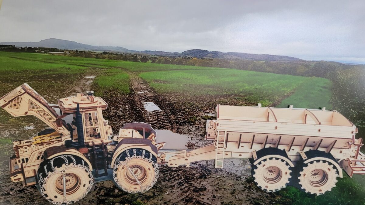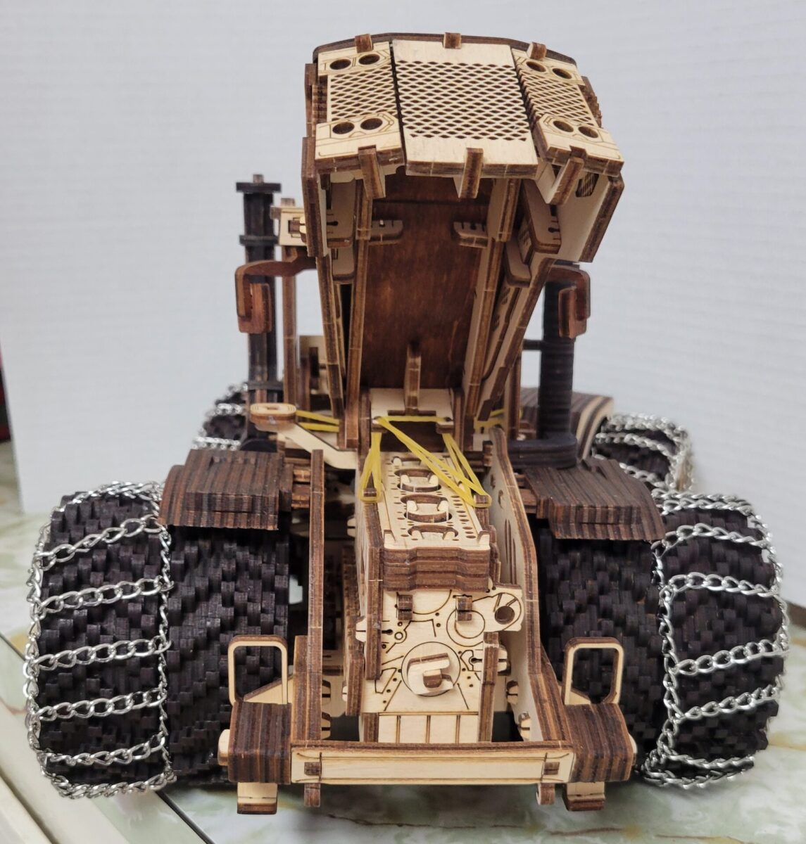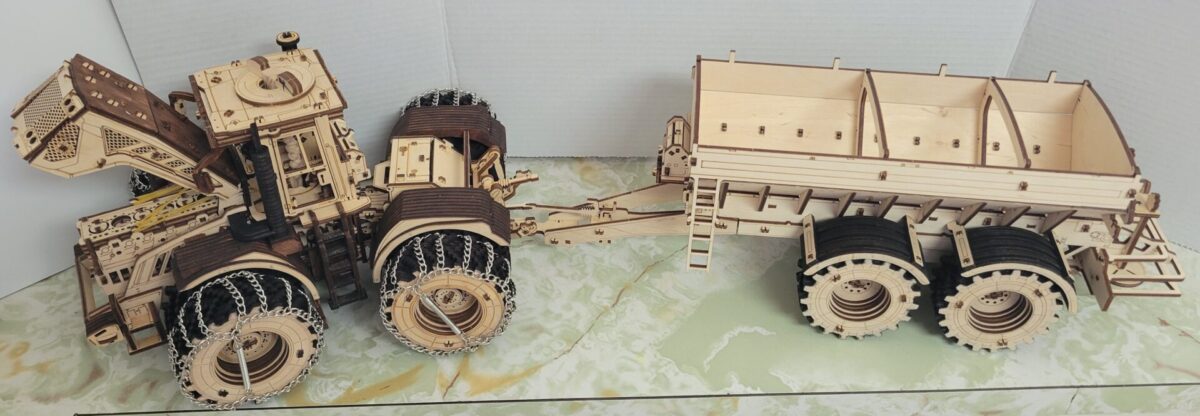 Mechanical wooden 3D-puzzle of the all-wheel-drive tractor Kirovets K-7M by EWA Eco-Wood-Art.