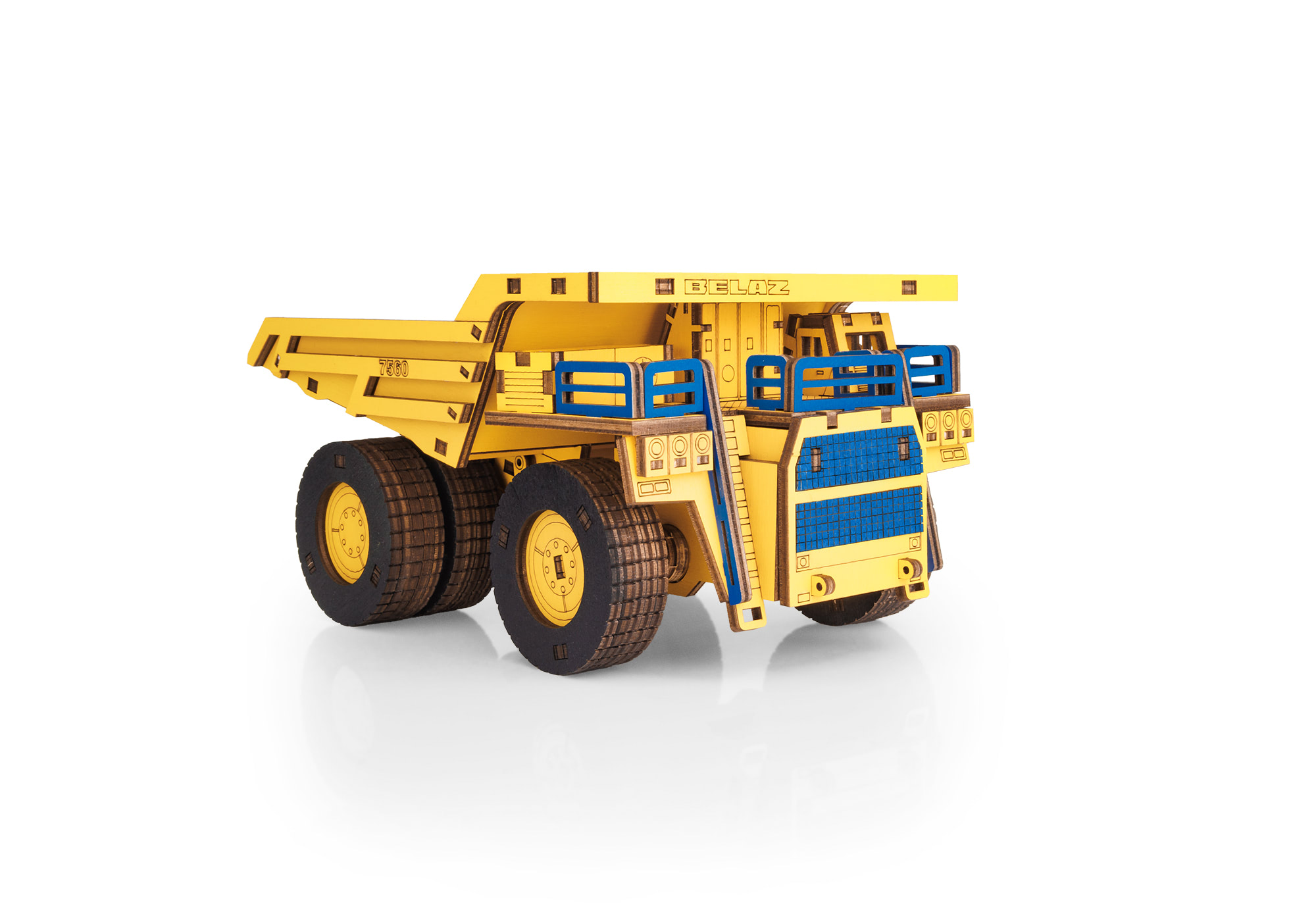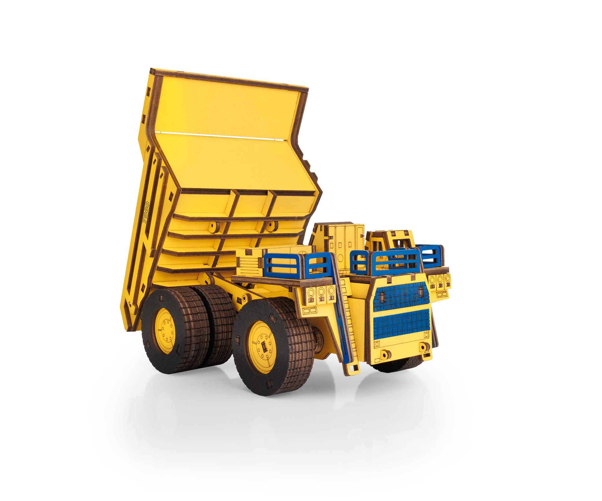Модель выполнена из качественного дерева и имеет яркую трехцветную окраску, что привлекает внимание и делает игру еще более увлекательной. Крутящиеся колеса позволяют легко передвигать самосвал по любой поверхности, а поднимающийся кузов добавляет элемент интерактивности, позволяя детям «загружать» и «разгружать» различные предметы.
