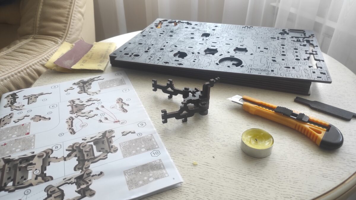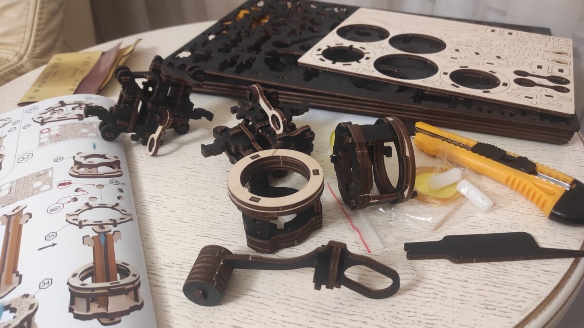 И вдруг подарили деревянный конструктор. Отнёсся скептически, но решил попробовать. Освободил журнальный столик, разложил инструменты и запланировал неспешно собирать по 2-3 детали в день. Пусть гости приходят, за разговорами тоже неспешно собирают, эдакая досужая развлекуха, чтоб было чем руки занять.