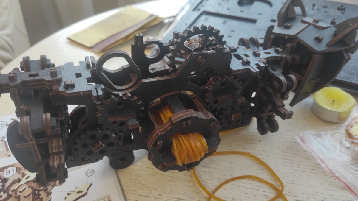 Отдельно нужно отметить качество. Качество полиграфии инструкции, качество самой инструкции (по факту, из всей многостраничной инструкции пропущен только этап финального крепления хвоста, но там и без инструкции очевидно), наличие всего необходимого (на фото фигурирует свечка — это я не сразу заметил, что воск для смазки движущихся пар присутствует в комплекте). Довольно непривычно, вспоминая, как в детстве приходилось до многого доходить самому, в том числе и путём сломанных деталей…