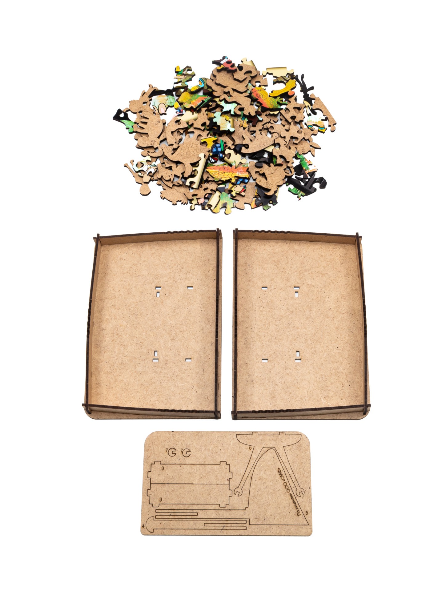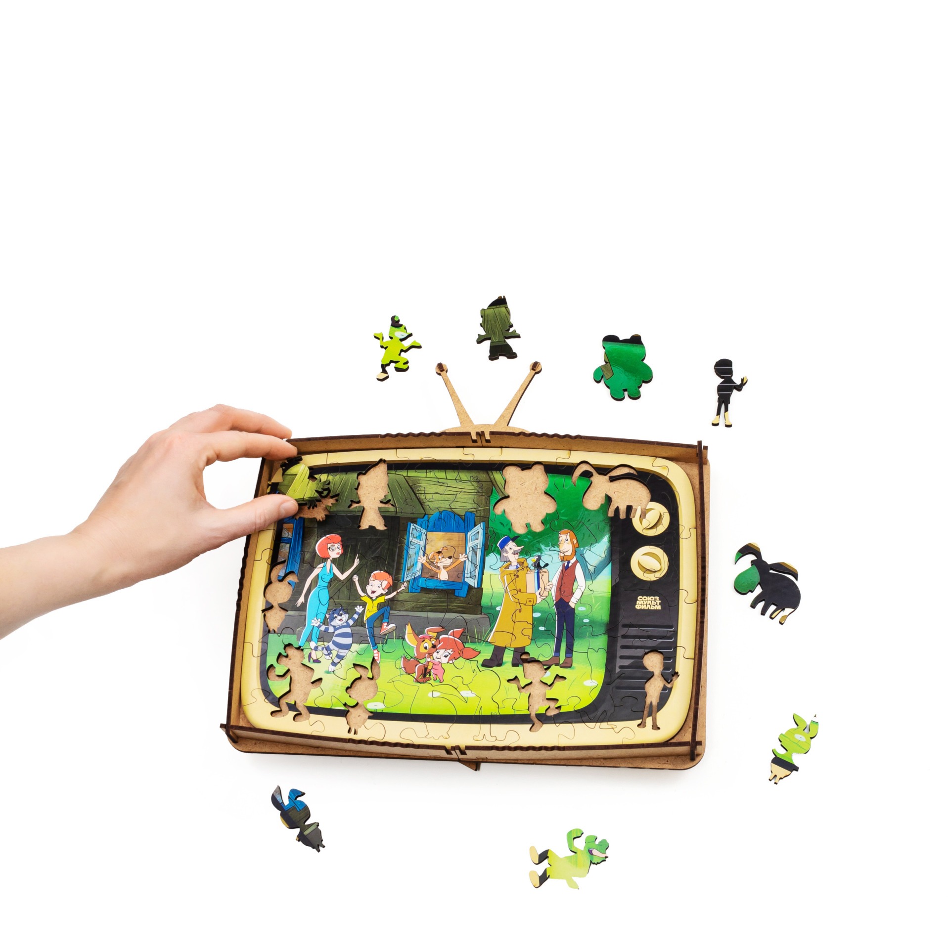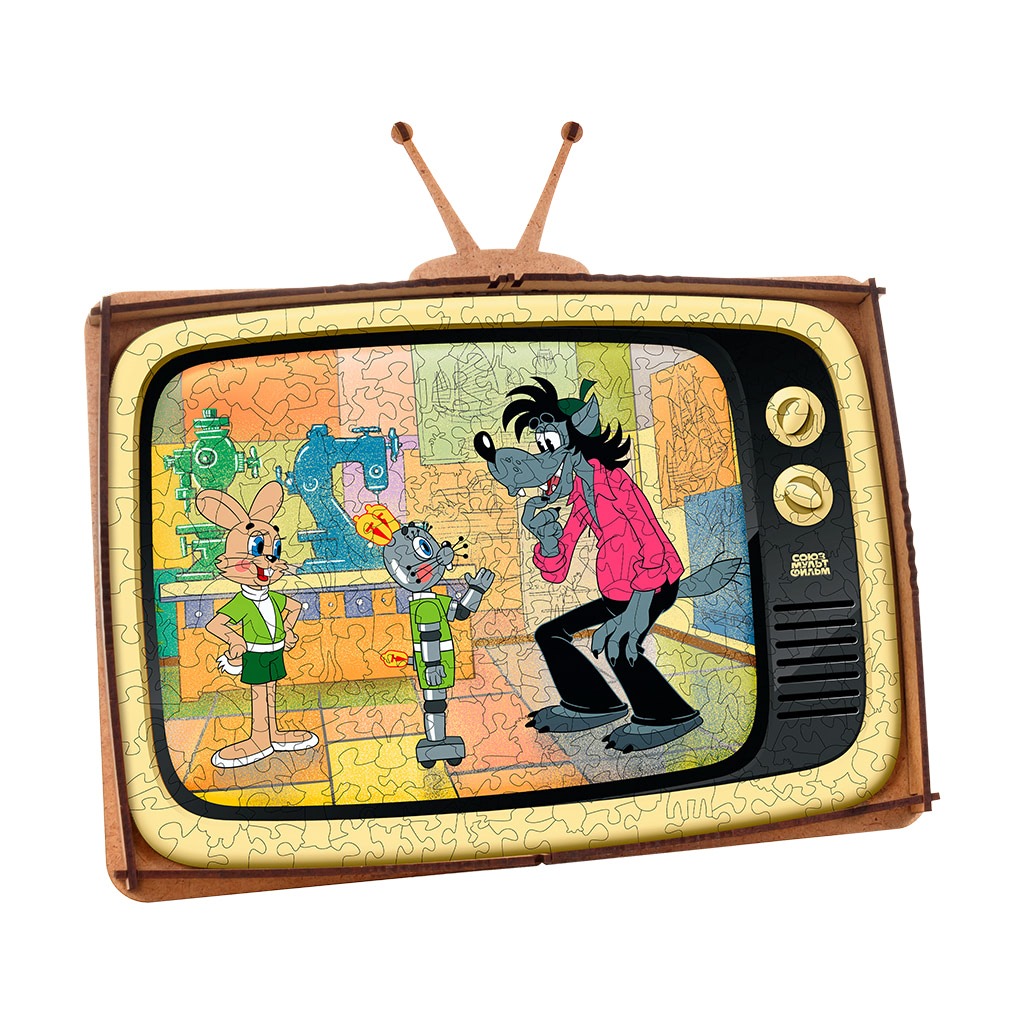 А главной фишкой этого пазла является его коробка, которая трансформируется в подставку для пазла в виде ретро телевизора. Деревянный пазл станет прекрасным подарком для всех любителей мультфильмов Союзмультфильма и для тех, кто хочет сохранить и передать своим детям частичку своего детства.