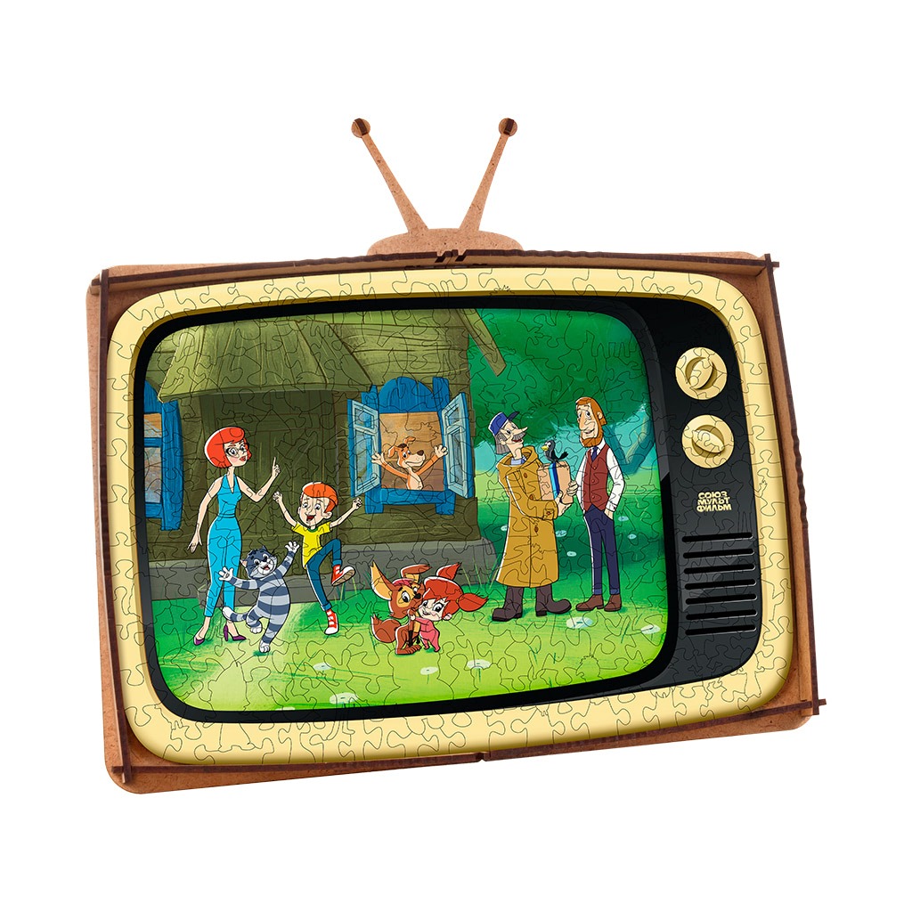 А главной фишкой этого пазла является его коробка, которая трансформируется в подставку для пазла в виде ретро телевизора. Деревянный пазл станет прекрасным подарком для всех любителей мультфильмов Союзмультфильма и для тех, кто хочет сохранить и передать своим детям частичку своего детства.