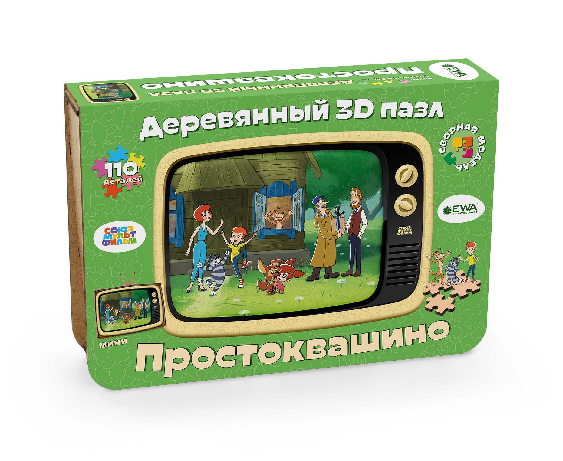 Деревянный 3D пазл МИНИ Союзмультфильм «Простоквашино» (упаковка трансформер)