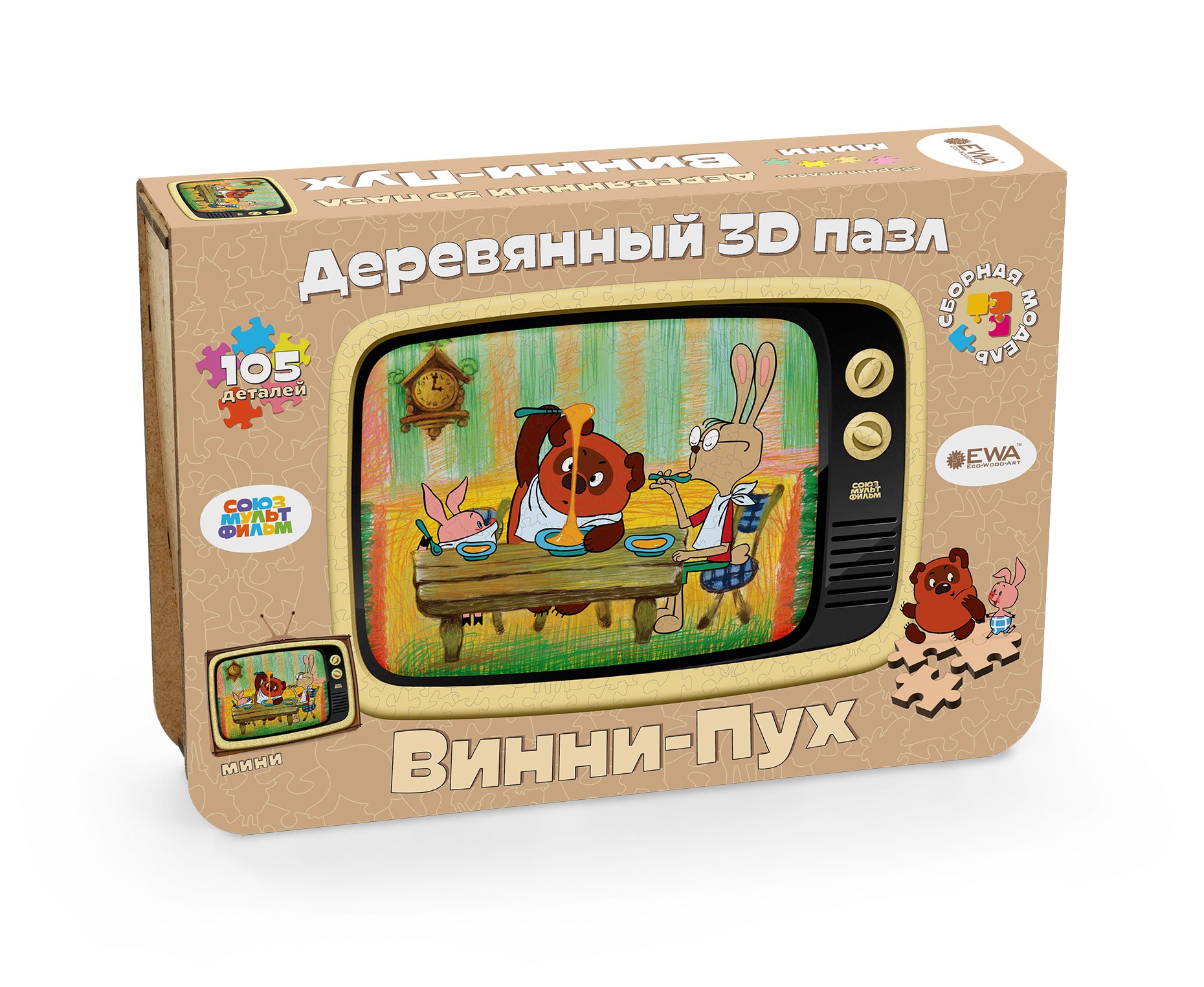 1 отзыв на Деревянный 3D пазл МИНИ Союзмультфильм «Винни-Пух» (упаковка трансформер)