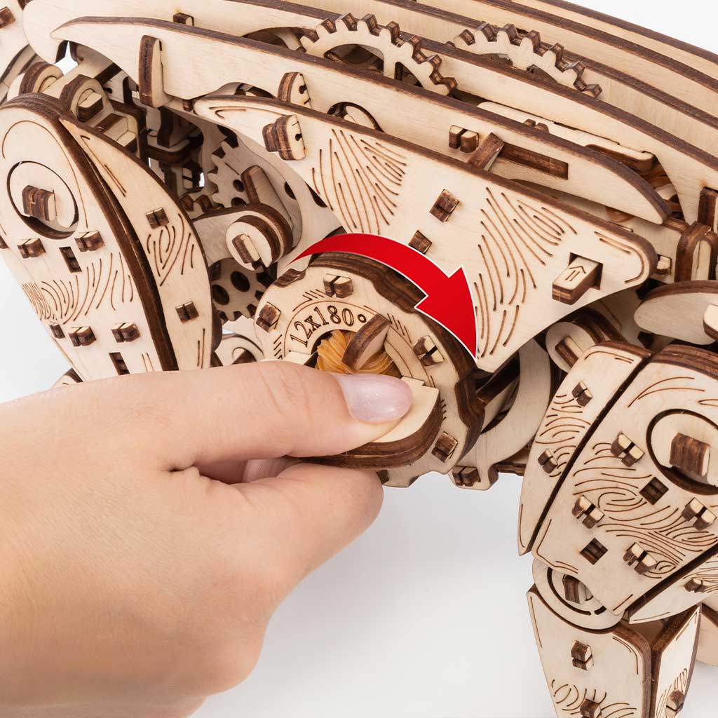 ИнструкцияМеханический 3D-пазл про ходячего кота. Модель имеет двигатель на резиновой ленте, механизм старт/стоп и гибкий хвост.