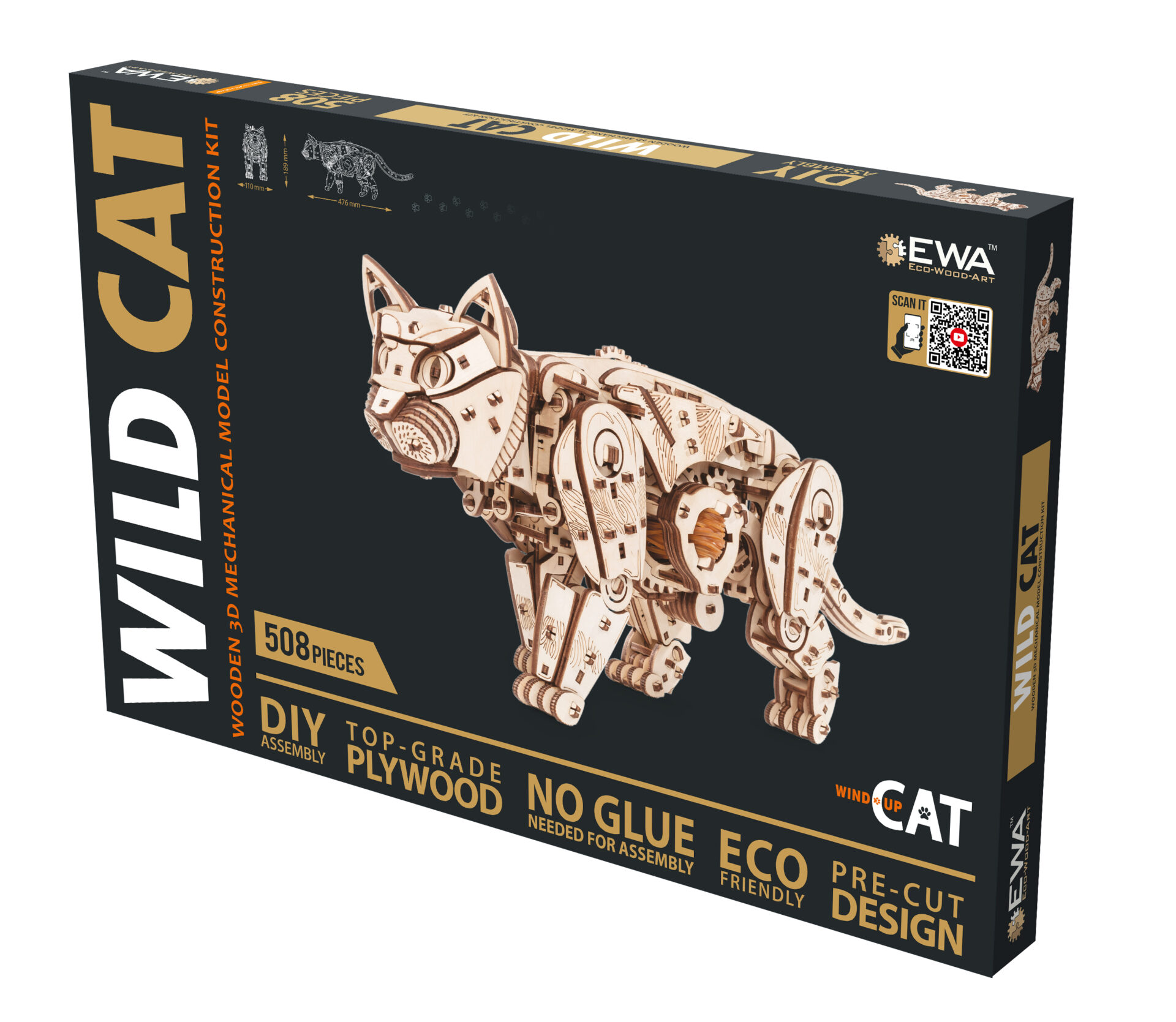 Механический 3D-пазл про ходячего кота. Модель имеет двигатель на резиновой ленте, механизм старт/стоп и гибкий хвост.