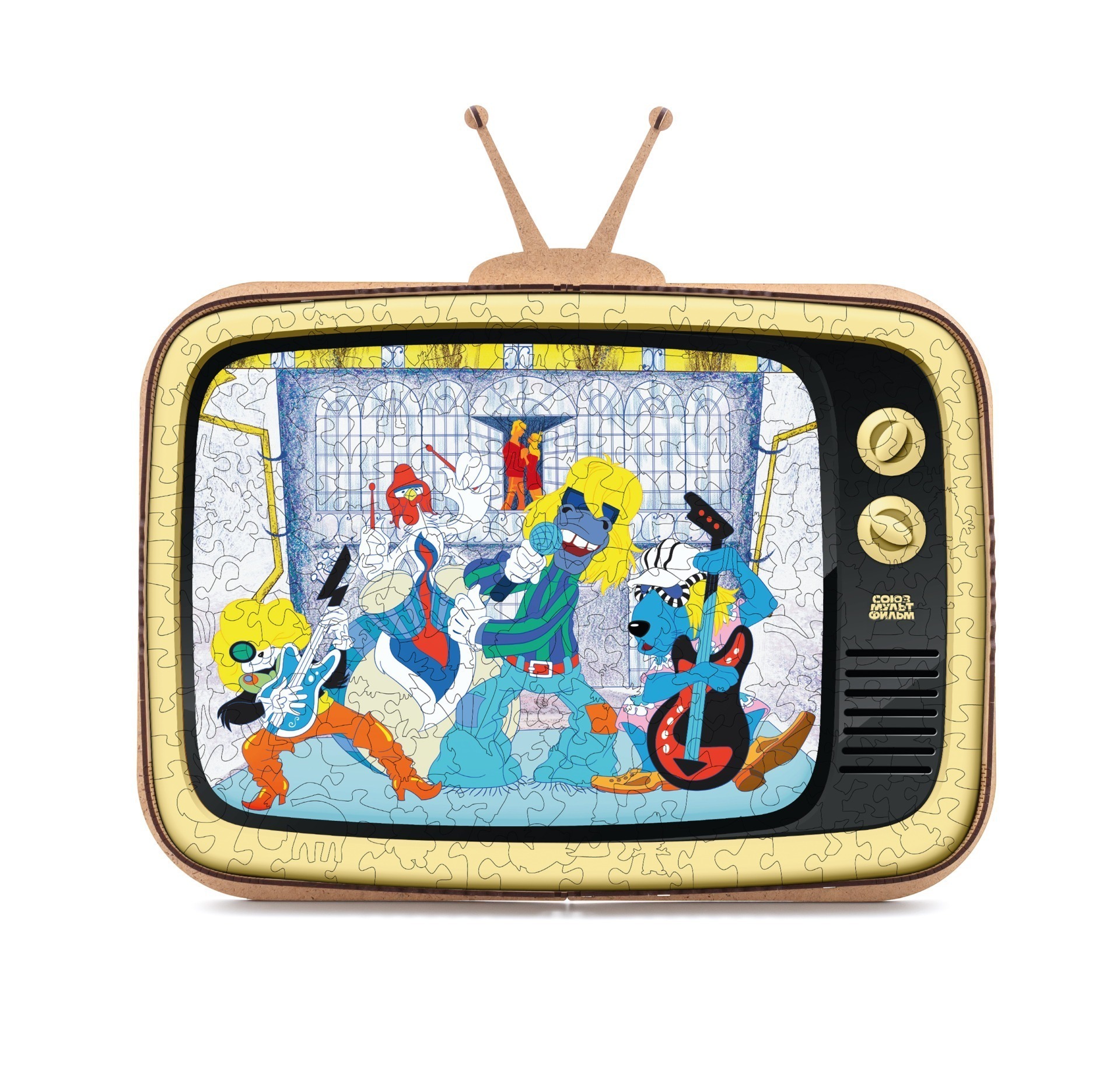 Деревянный пазл СоюзМультФильм превратит сборку головоломки в захватывающее приключение! А главной фишкой этого пазла является его коробка, которая трансформируется в подставку для пазла в виде ретро телевизора. Устройте праздник для своего воображения и отправляйтесь в удивительный мир, созданный знаменитой мультипликационной студией. Отправьтесь на встречу с любимыми героями и персонажами, чьи приключения оставили свой след в сердцах всех поклонников мультфильмов. Этот деревянный пазл подарит вам уникальную возможность ближе познакомиться с любимыми персонажами, а также развить пространственное мышление и творческие способности. Соберите этот пазл и окунитесь в волшебный мир СоюзМультФильм!