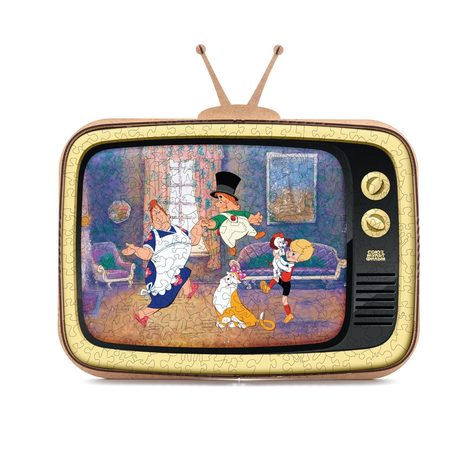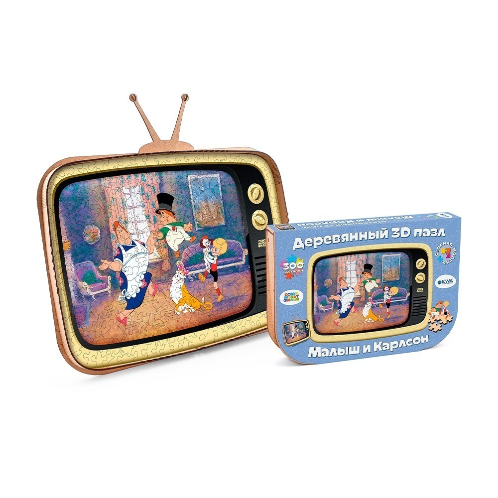 Деревянный пазл СоюзМультФильм превратит сборку головоломки в захватывающее приключение! А главной фишкой этого пазла является его коробка, которая трансформируется в подставку для пазла в виде ретро телевизора. Устройте праздник для своего воображения и отправляйтесь в удивительный мир, созданный знаменитой мультипликационной студией. Отправьтесь на встречу с любимыми героями и персонажами, чьи приключения оставили свой след в сердцах всех поклонников мультфильмов. Этот деревянный пазл подарит вам уникальную возможность ближе познакомиться с любимыми персонажами, а также развить пространственное мышление и творческие способности. Соберите этот пазл и окунитесь в волшебный мир СоюзМультФильм!