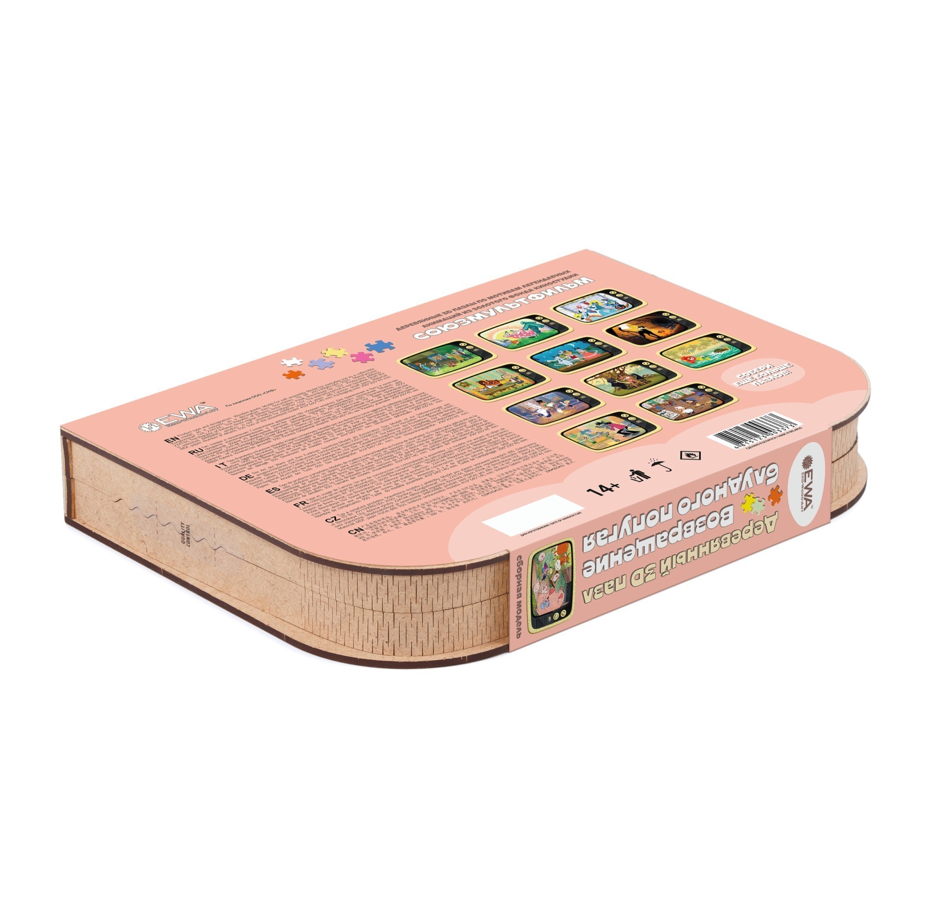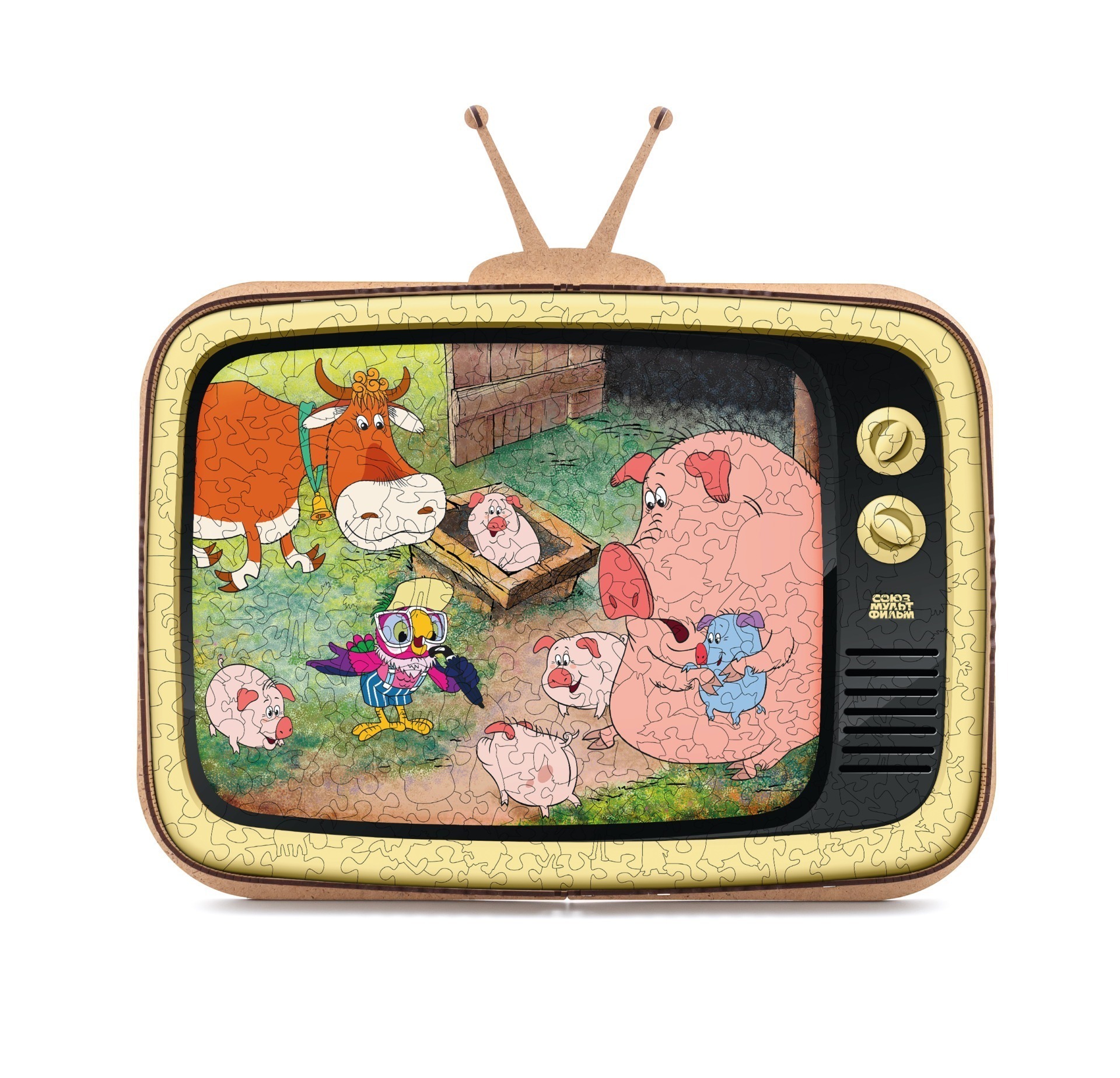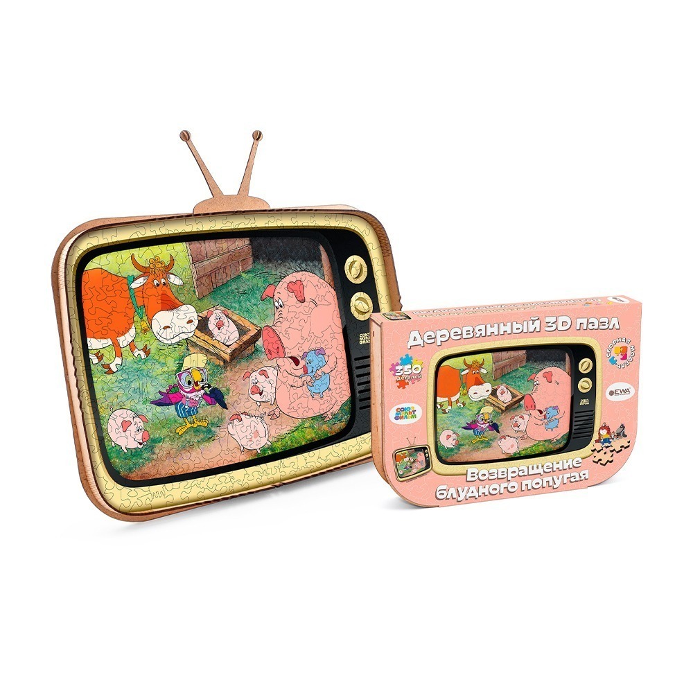 Деревянный пазл СоюзМультФильм превратит сборку головоломки в захватывающее приключение! А главной фишкой этого пазла является его коробка, которая трансформируется в подставку для пазла в виде ретро телевизора. Устройте праздник для своего воображения и отправляйтесь в удивительный мир, созданный знаменитой мультипликационной студией. Отправьтесь на встречу с любимыми героями и персонажами, чьи приключения оставили свой след в сердцах всех поклонников мультфильмов. Этот деревянный пазл подарит вам уникальную возможность ближе познакомиться с любимыми персонажами, а также развить пространственное мышление и творческие способности. Соберите этот пазл и окунитесь в волшебный мир СоюзМультФильм!
