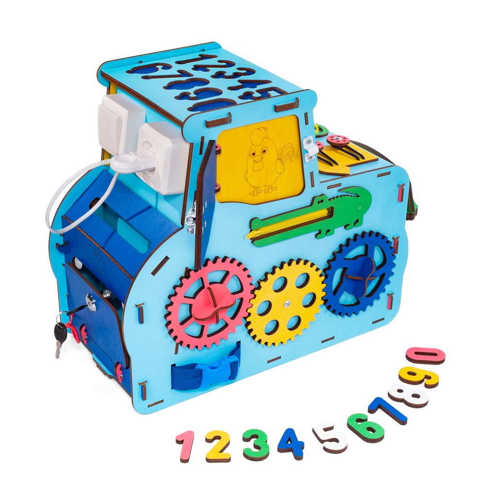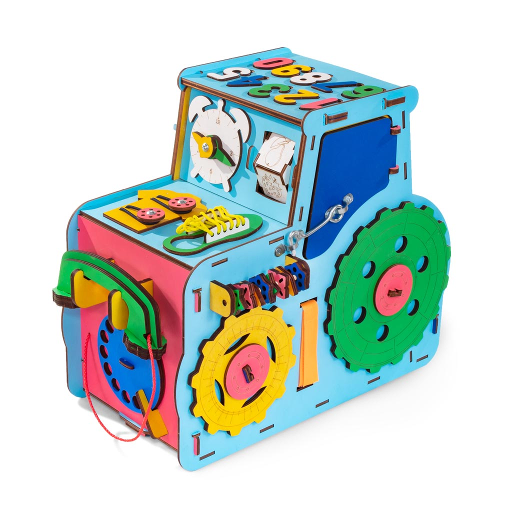 Бизиборд — Трактор поможет вашим деткам увлекательно и, главное, безопасно исследовать этот мир. Это просто кладезь полезных и занимательных упражнений для малыша, которые способствуют развитию логического мышления, воображения и фантазии, усидчивости, а также помогают постепенно адаптироваться к бытовой среде. И самое главное, бизиборд незаменим для развития и тренировки мелкой моторики малышей.