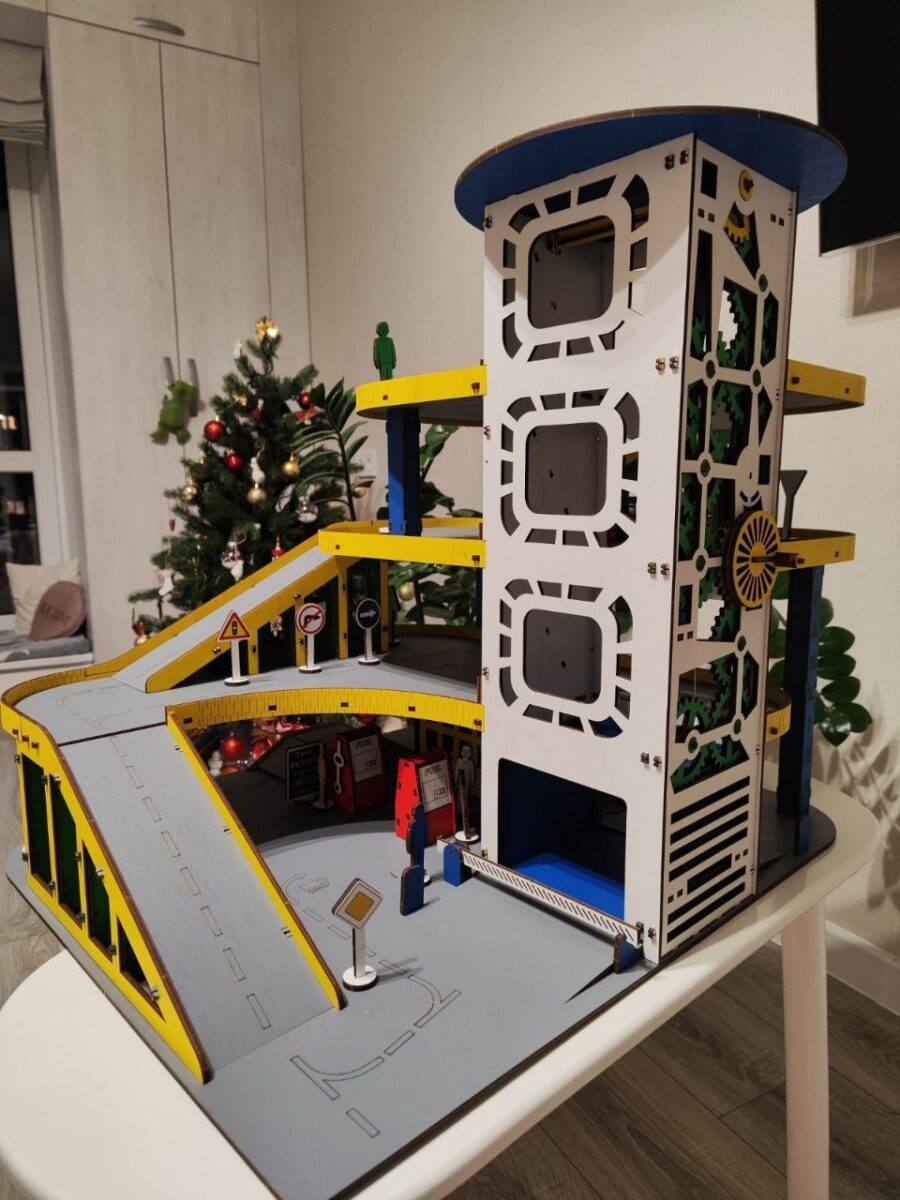 Деревянный многоуровневый паркинг — это не просто игрушка, это целый мир, который ребенок сможет создавать и исследовать вместе с радостью и увлечением.