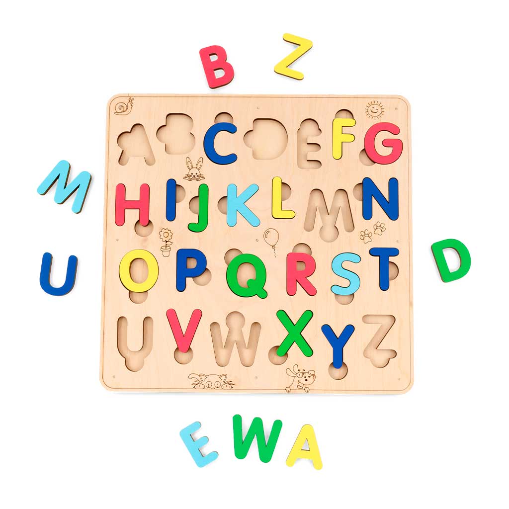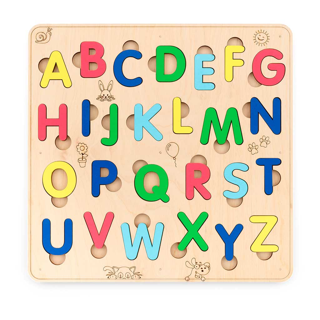 Развивающий сортер для малышей по системе Монтессори, который помогает изучить английский алфавит от А до Z в игровой форме.