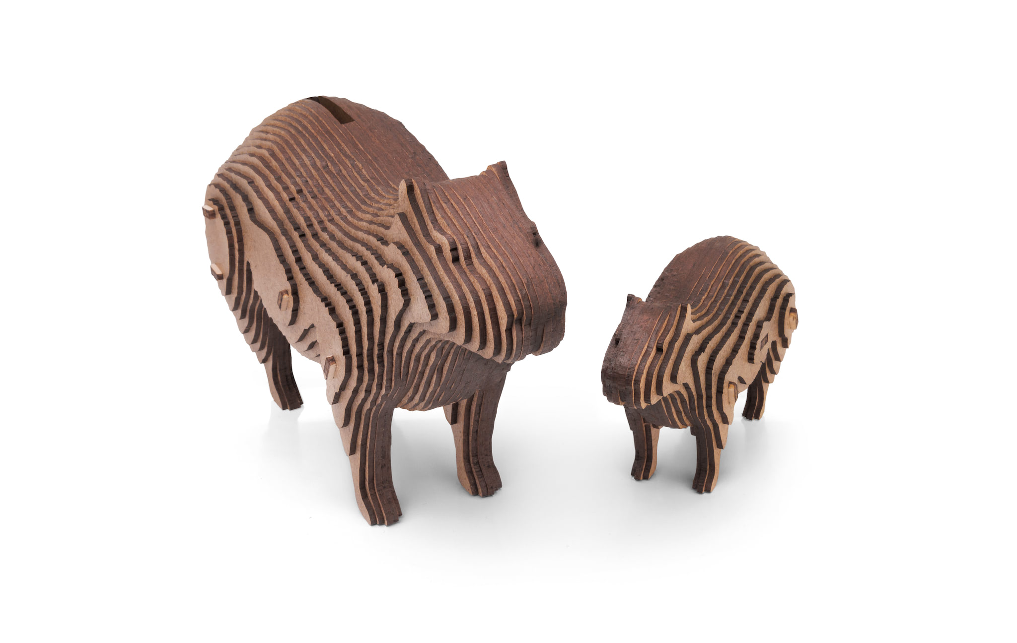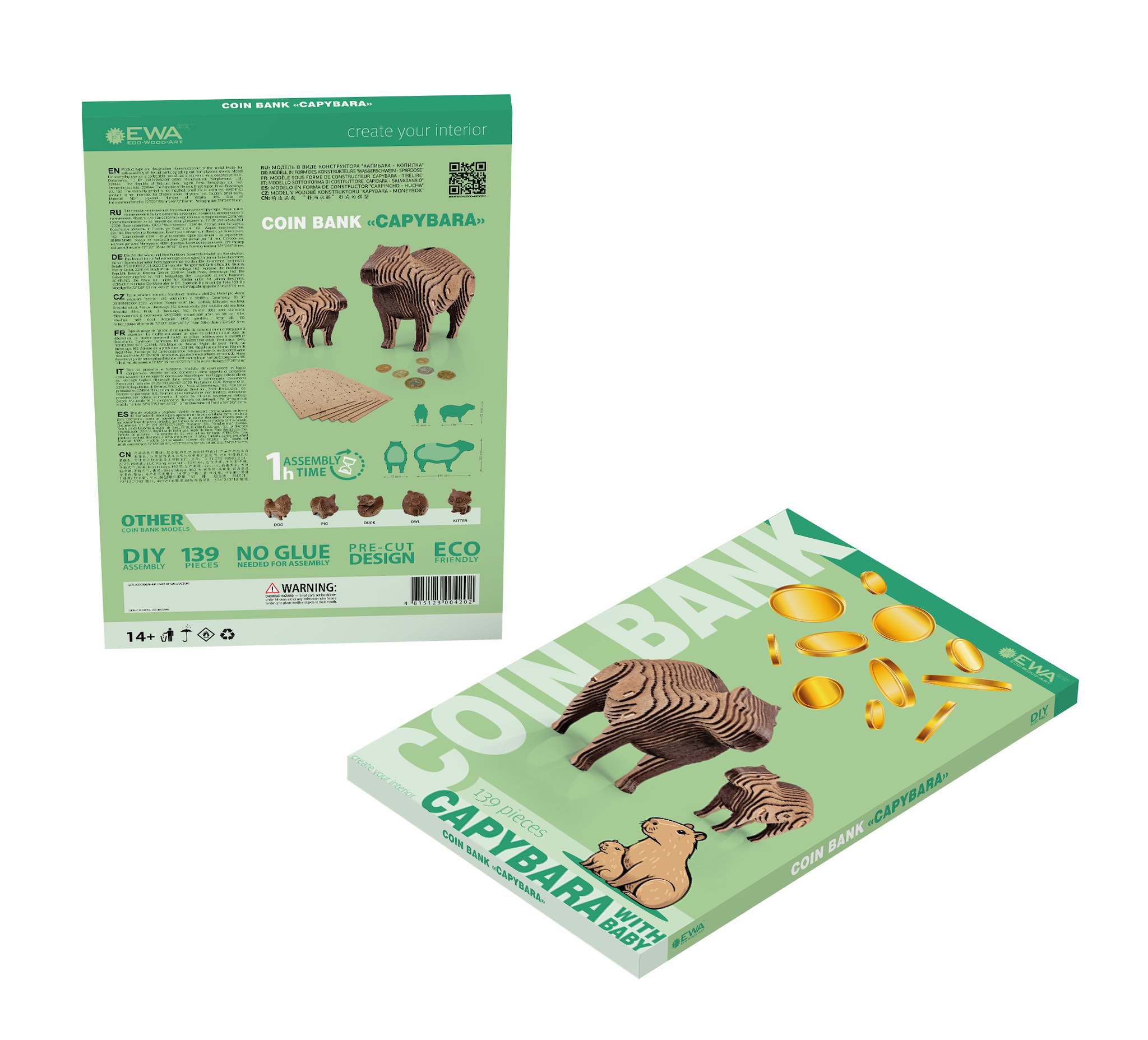 В комплекте вы найдете большую капибару и ее малыша, что делает сборку еще более увлекательной и интересной. После завершения сборки, ваша капибара станет не только украшением интерьера, но и надежным местом для хранения монет и мелких купюр. В копилке имеется специальный отсек, открыв который, можно извлечь накопленные деньги