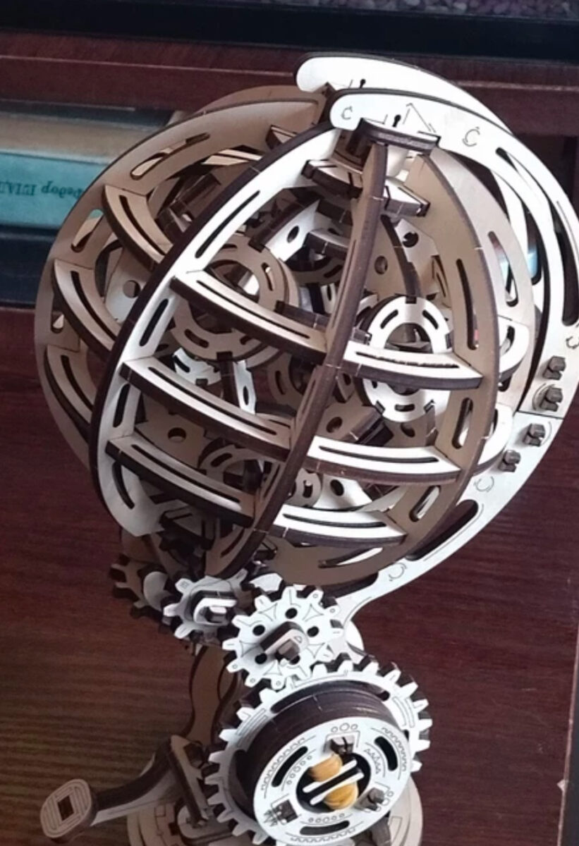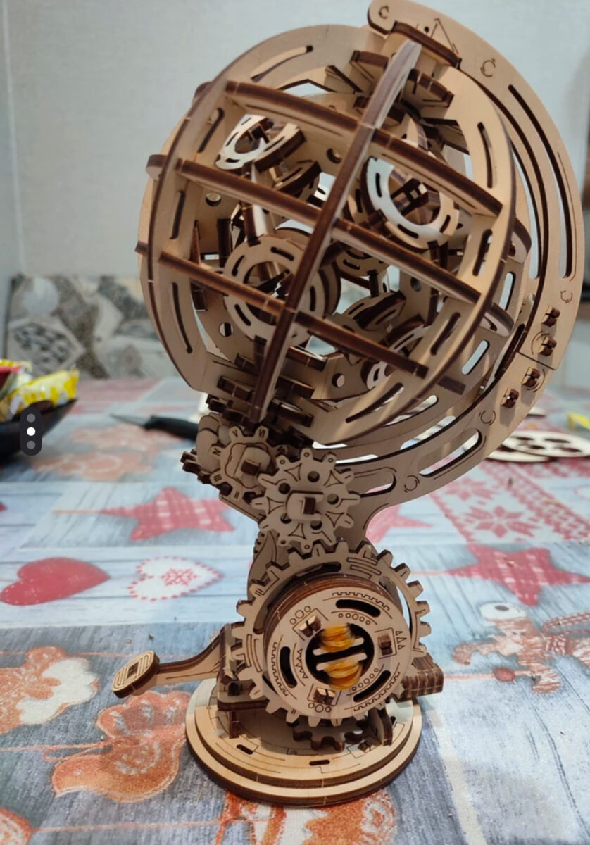 Это механический деревянный конструктор, который состоит из 205 тщательно обработанных деталей, которые легко соединяются, позволяя вам насладиться процессом сборки. Кинетический глобус отлично подойдет новичку в сборке механических моделей.