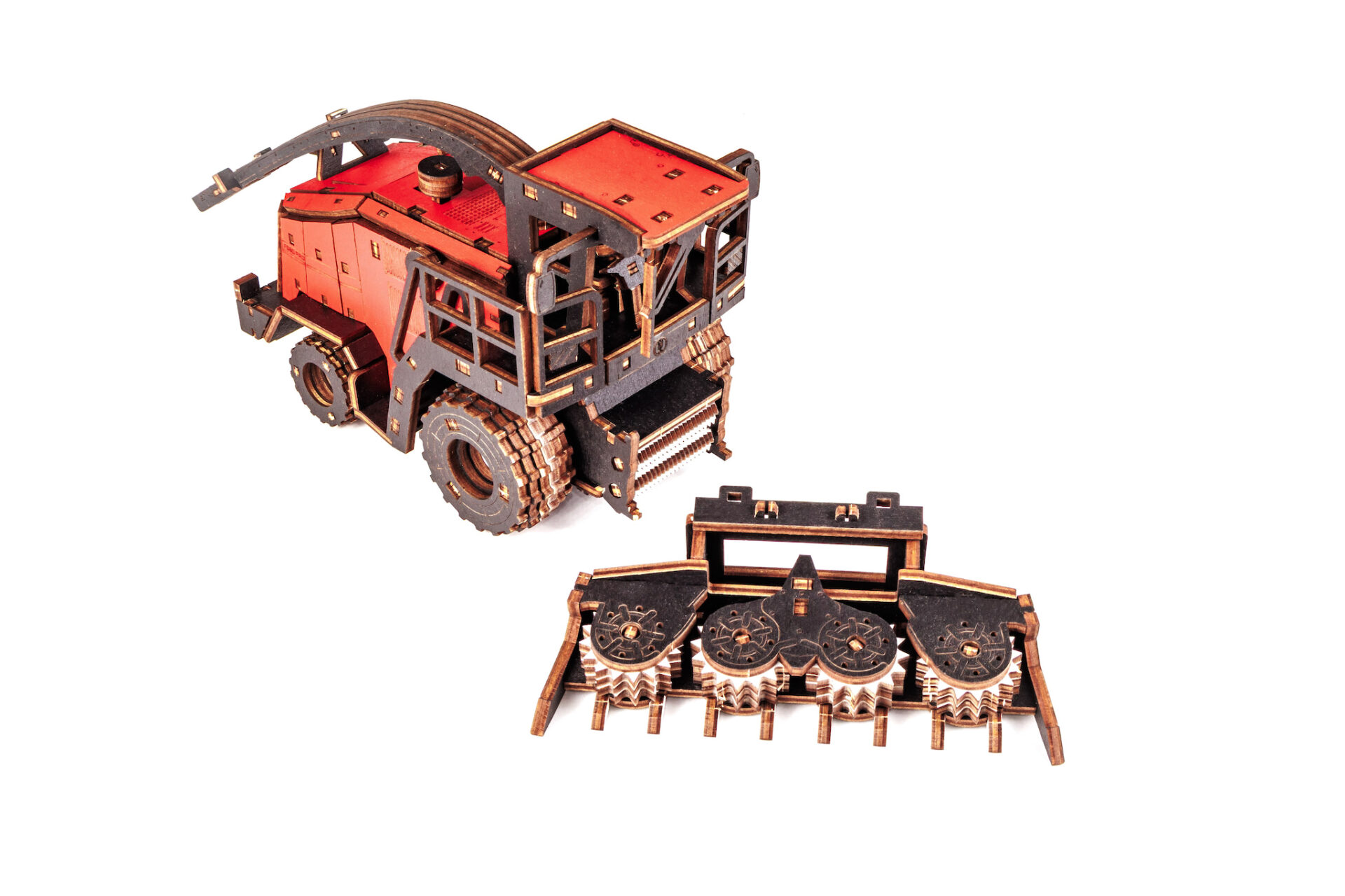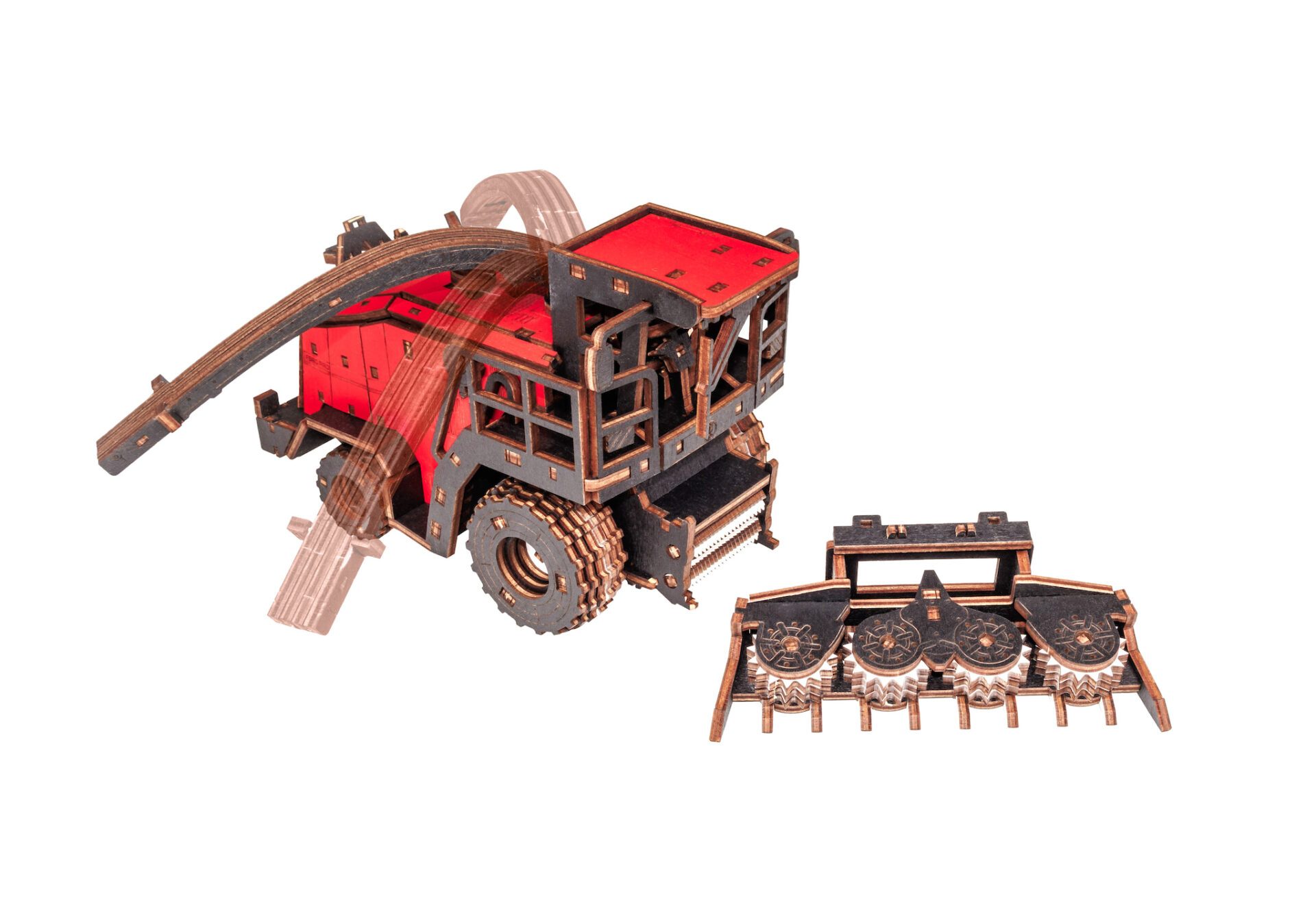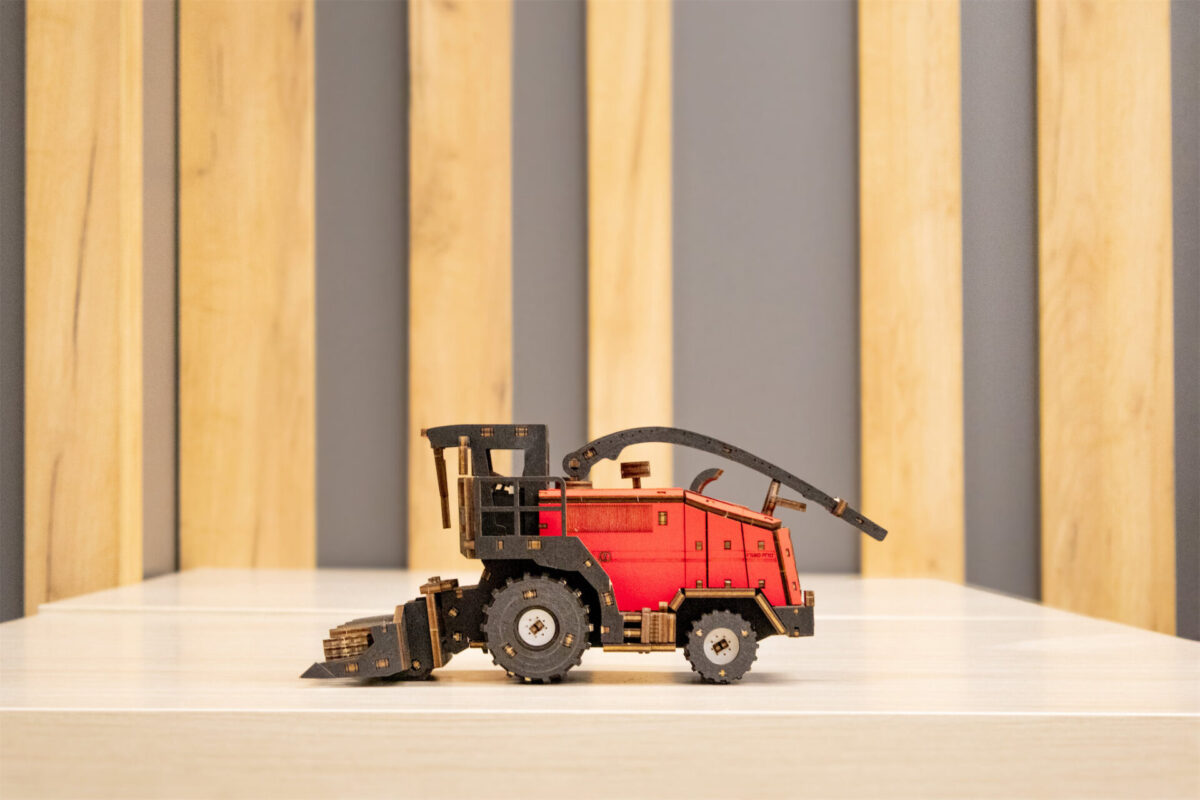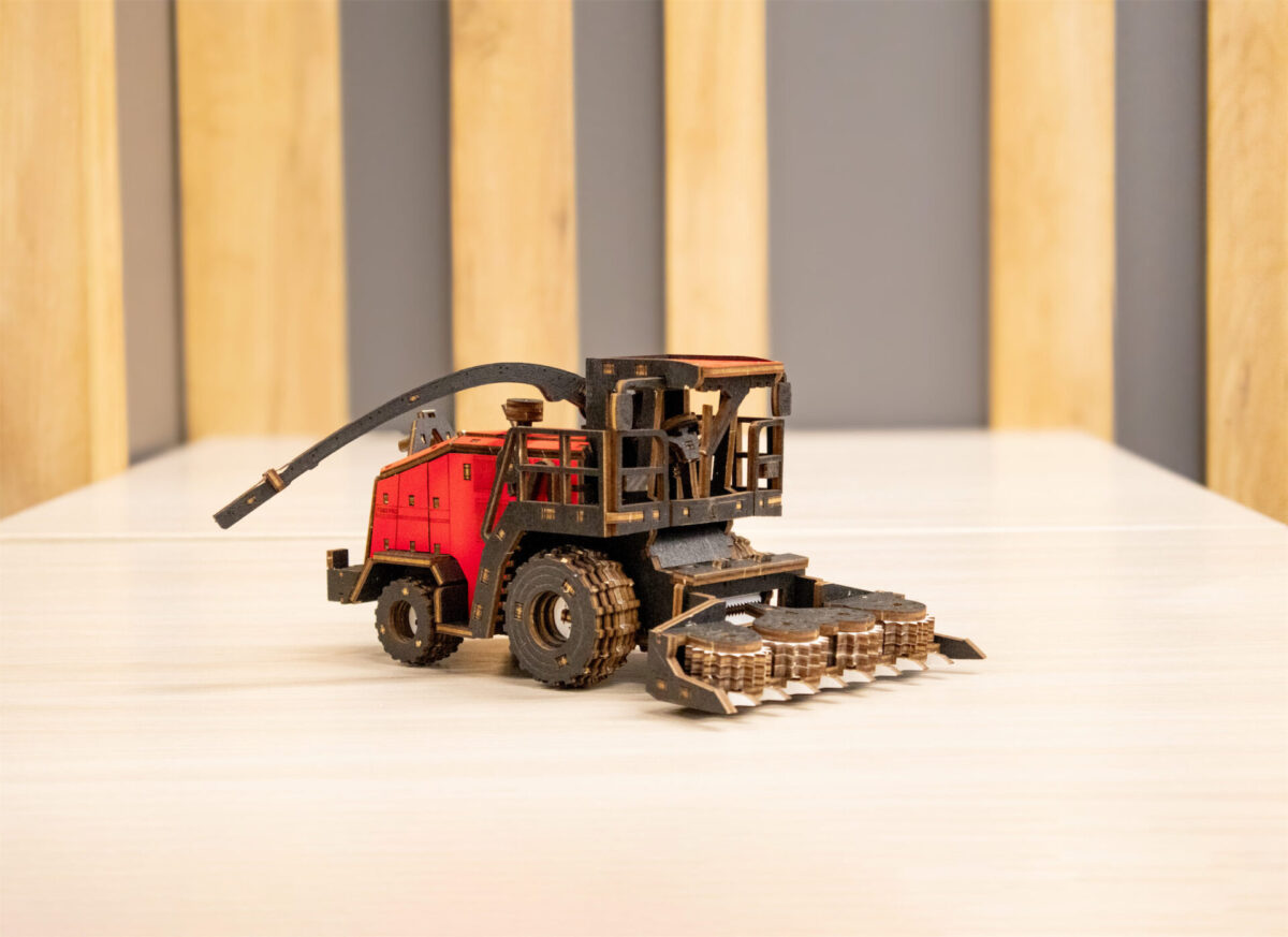 Механическая модель комбайна оснащена вращающимся силосопроводом. А съемная, активная жатка делает эту модель ещё более реалистичной и функциональной.