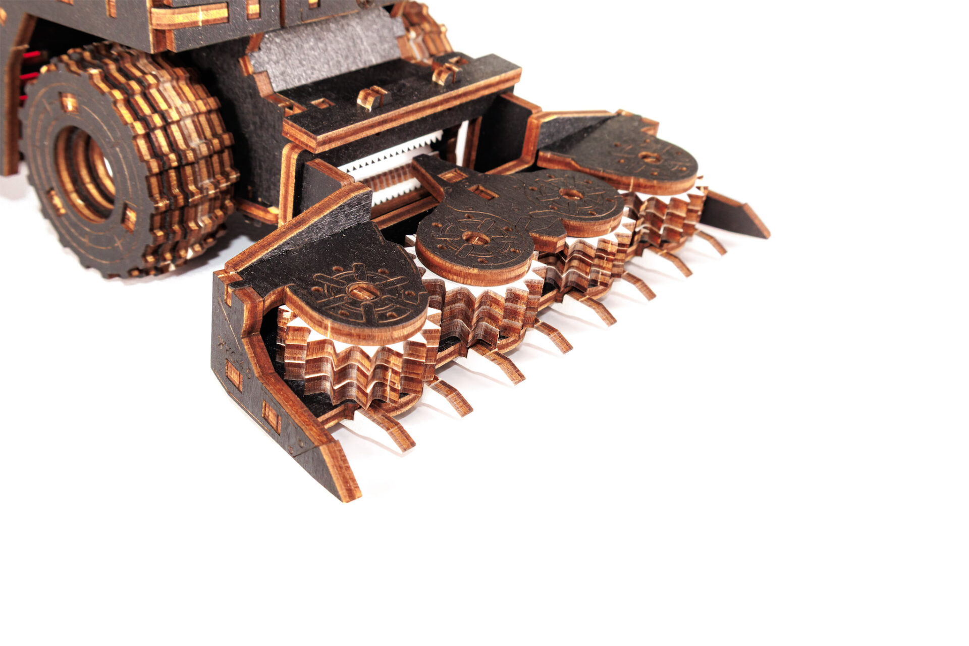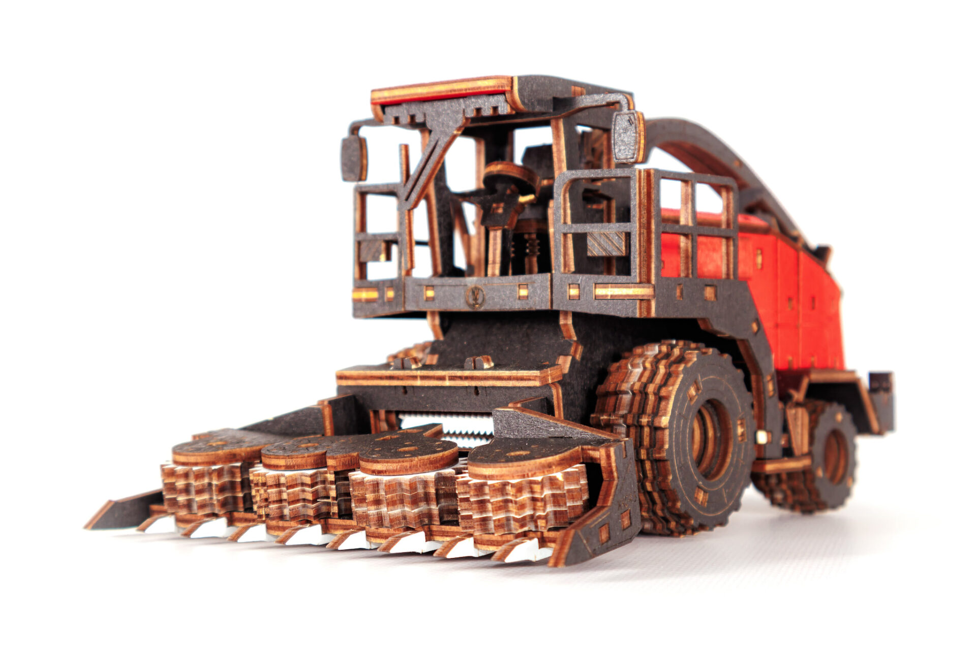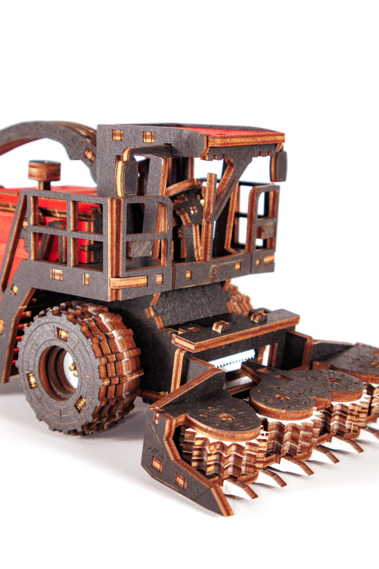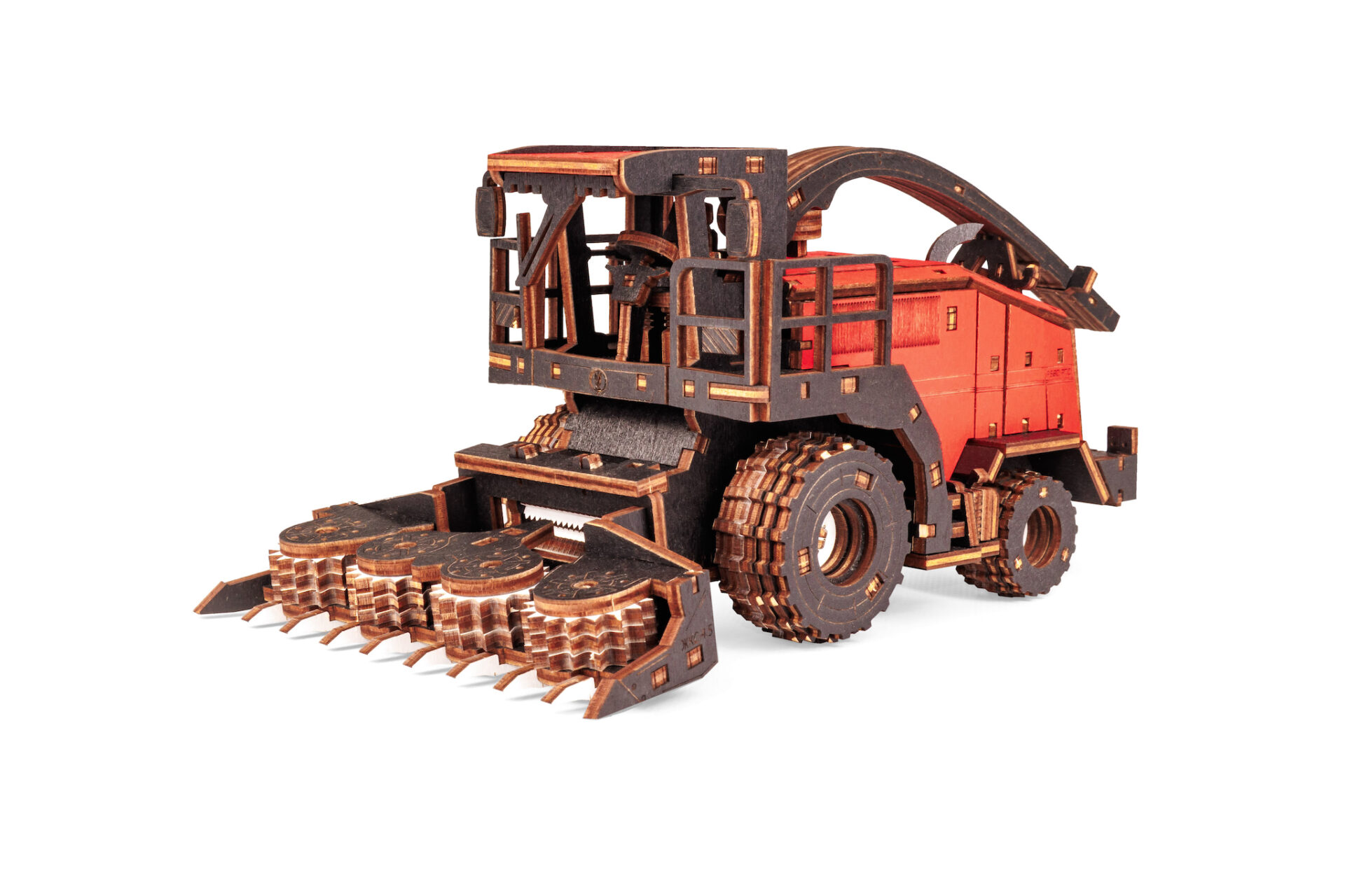 Механическая модель комбайна оснащена вращающимся силосопроводом. А съемная, активная жатка делает эту модель ещё более реалистичной и функциональной.