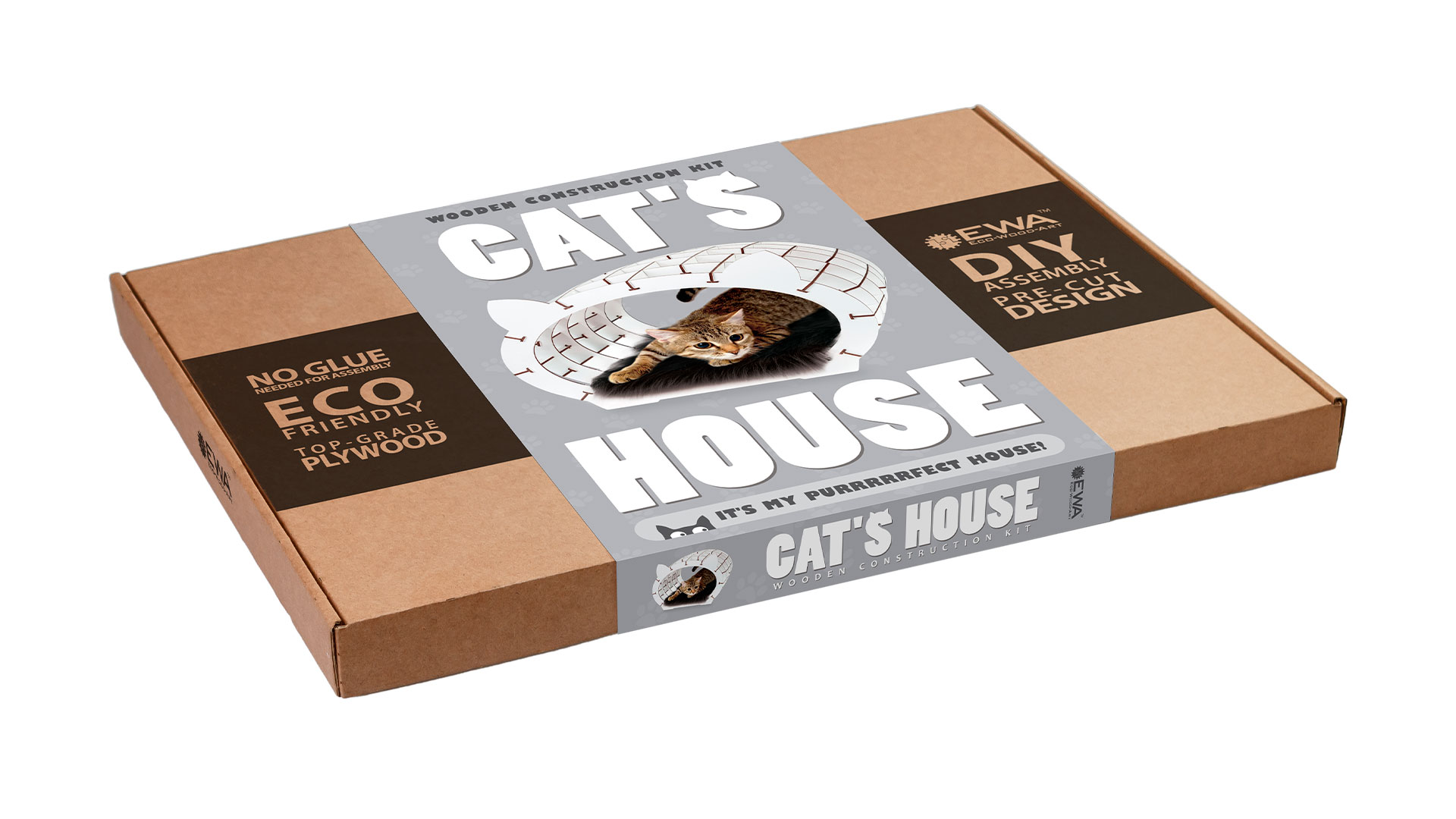 Конструктор деревянного домика с мехом для кошки. Поставляется в 4 цветовых вариантах: