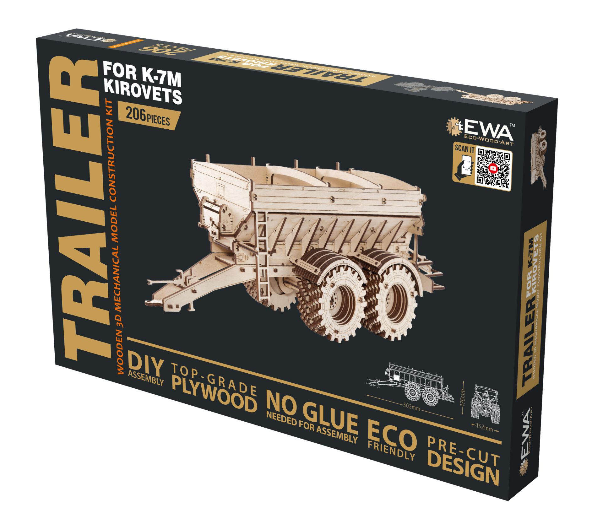 Механический 3D-пазл прицепа для Кировца К-7М от EWA Eco-Wood-Art.