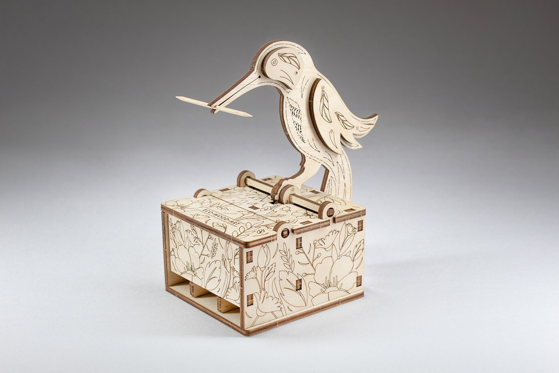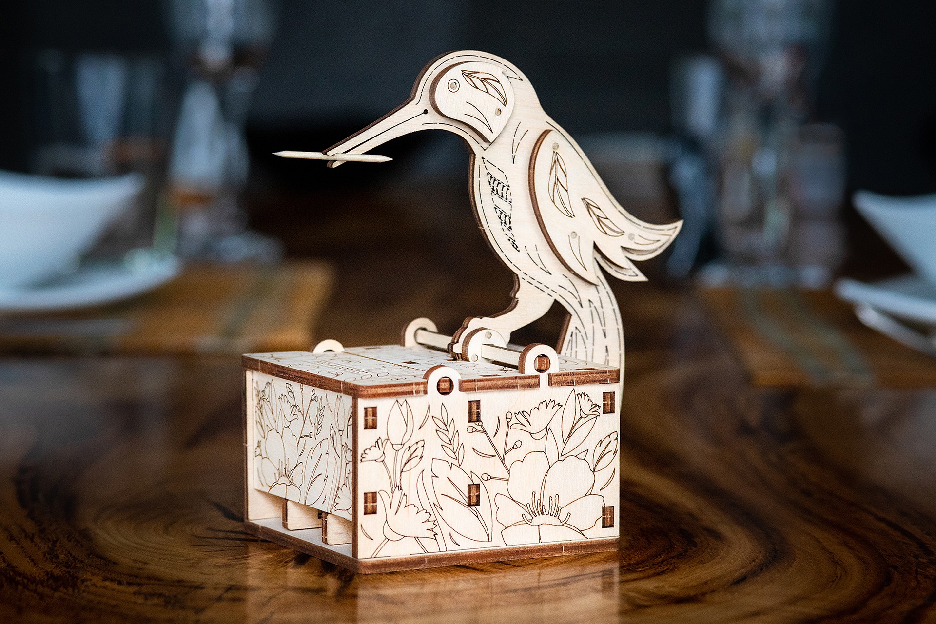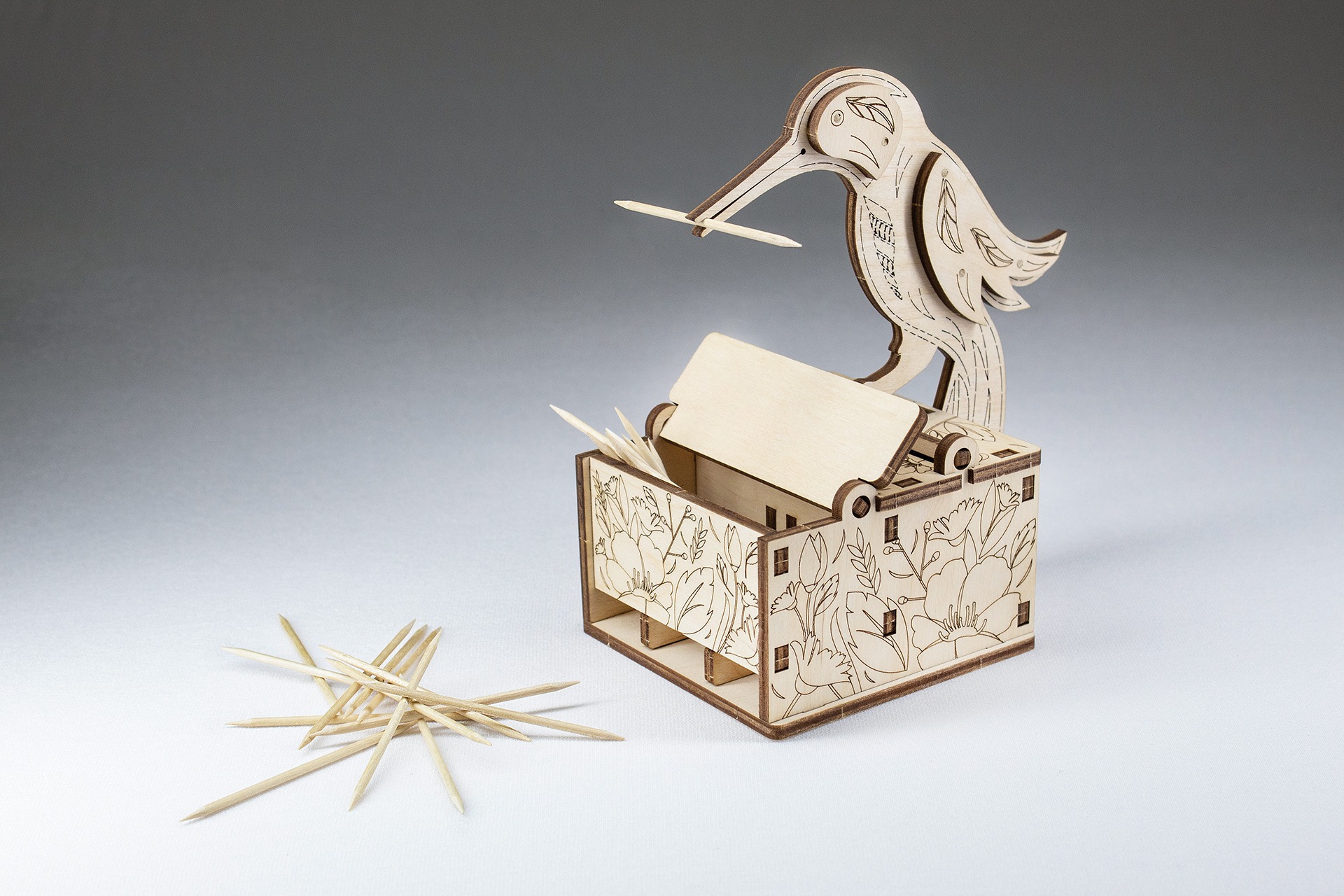 Конструктор «Птица» — механическая модель предназначенная для самостоятельной сборки без клея. Полезный, удобный, стильный и оригинальный гаджет для любой кухни или праздничного стола. Модель может использоваться для дизайна интерьера или эксплуатироваться как обычный диспенсер для зубочисток. Замечательный подарок, оригинальный предмет коллекционирования и просто полезная вещь для любого дома или офиса, бара, кафе или ресторана!